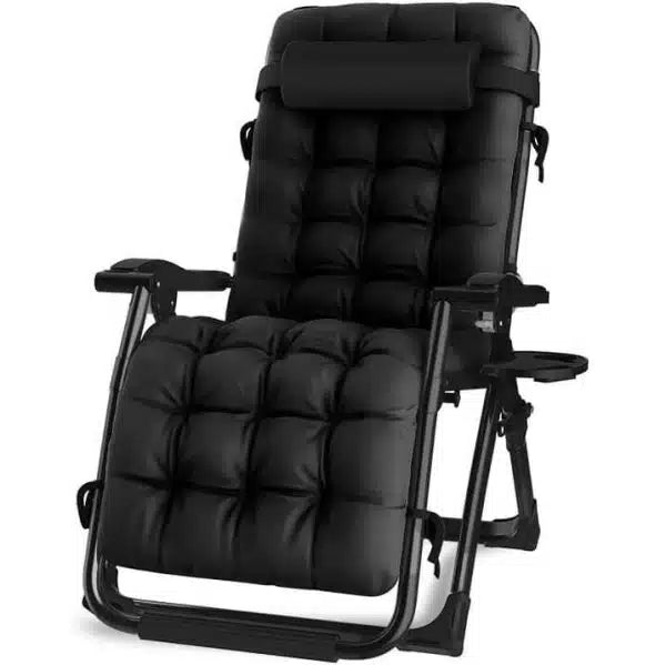 The detachable padded cushion and removable headrest pillow ensure extra comfort, while the cup holder tray keeps your drinks, phone, and magazines within reach. Best of all, no assembly is required—simply unfold and enjoy!